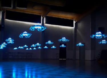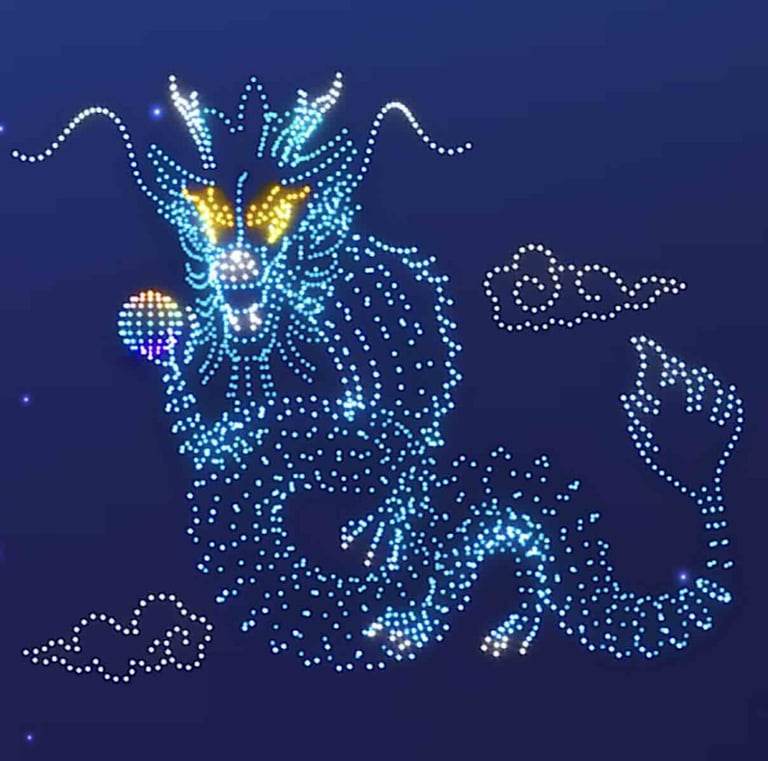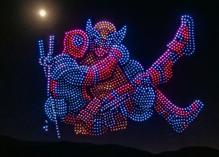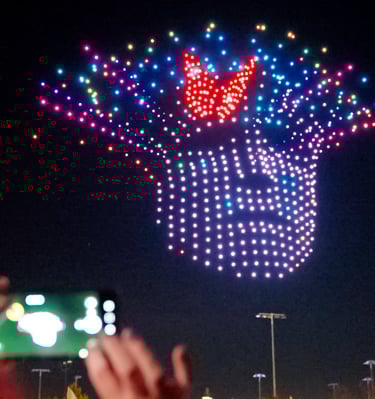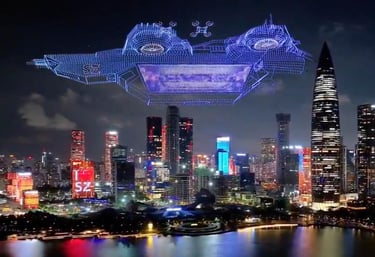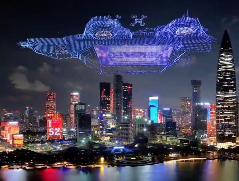 无人机科技与艺术结合,点亮城市夜空魅力。
