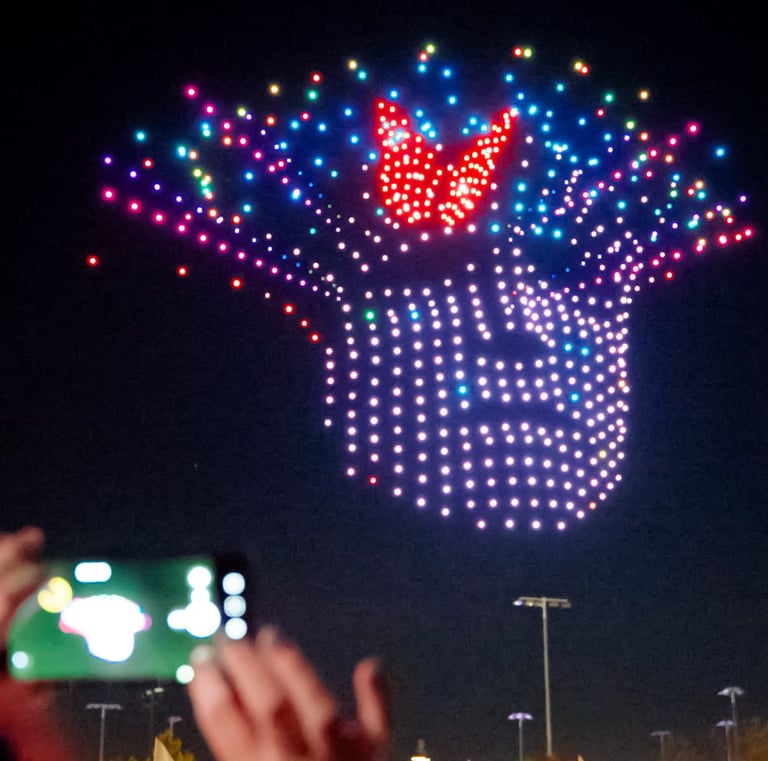 飞联的无人机表演让我们的活动增色不少,科技与艺术的结合令人惊叹,夜空中的视觉盛宴让人难以忘怀。